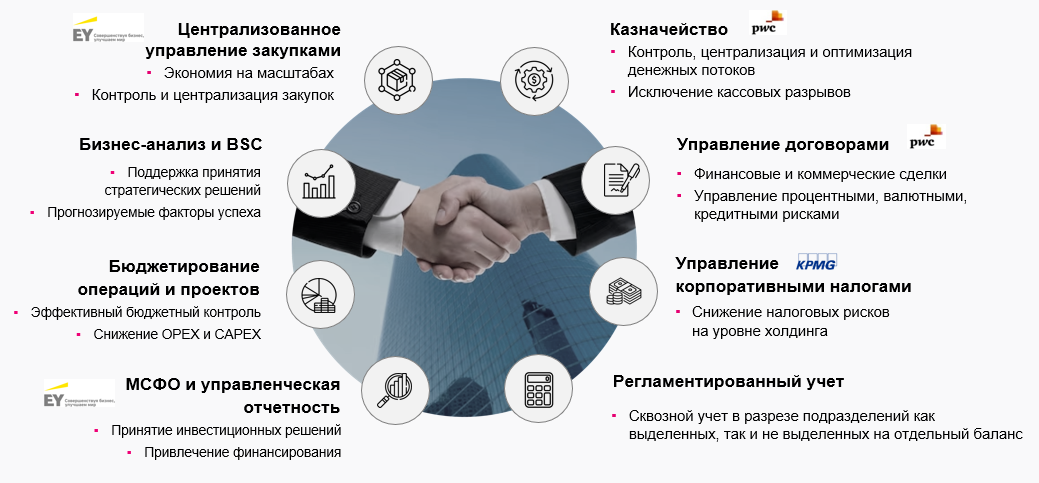 • Продемонстрируем типовой функционал 1С:Управление холдингом