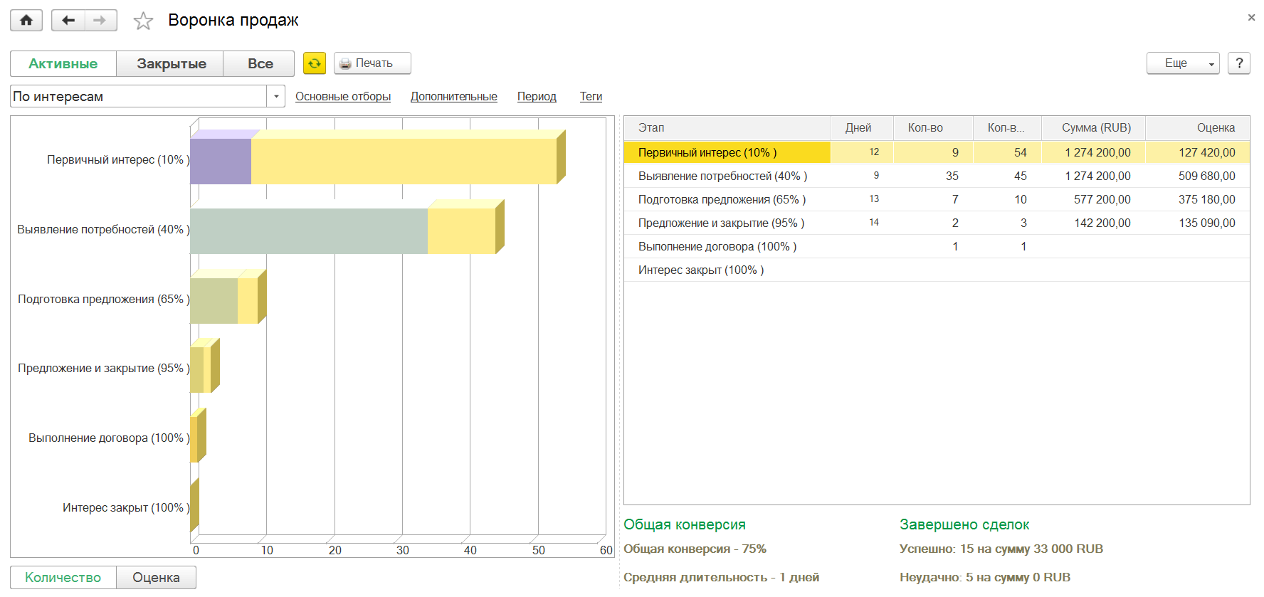 Воронка продаж в 1С:CRM